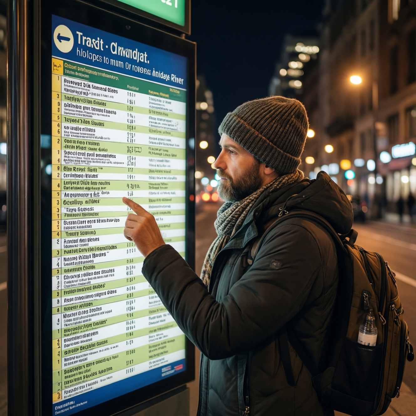 | Ночной автобус | Часто ограниченные окна | Обычно длиннее, чем днём | Удлинение интервала, укорочение трассы, пропуск остановок, перенос остановок из-за перекрытий | Сверить "ночной автобус расписание" и примечания; выбрать запасную остановку и альтернативный маршрут |